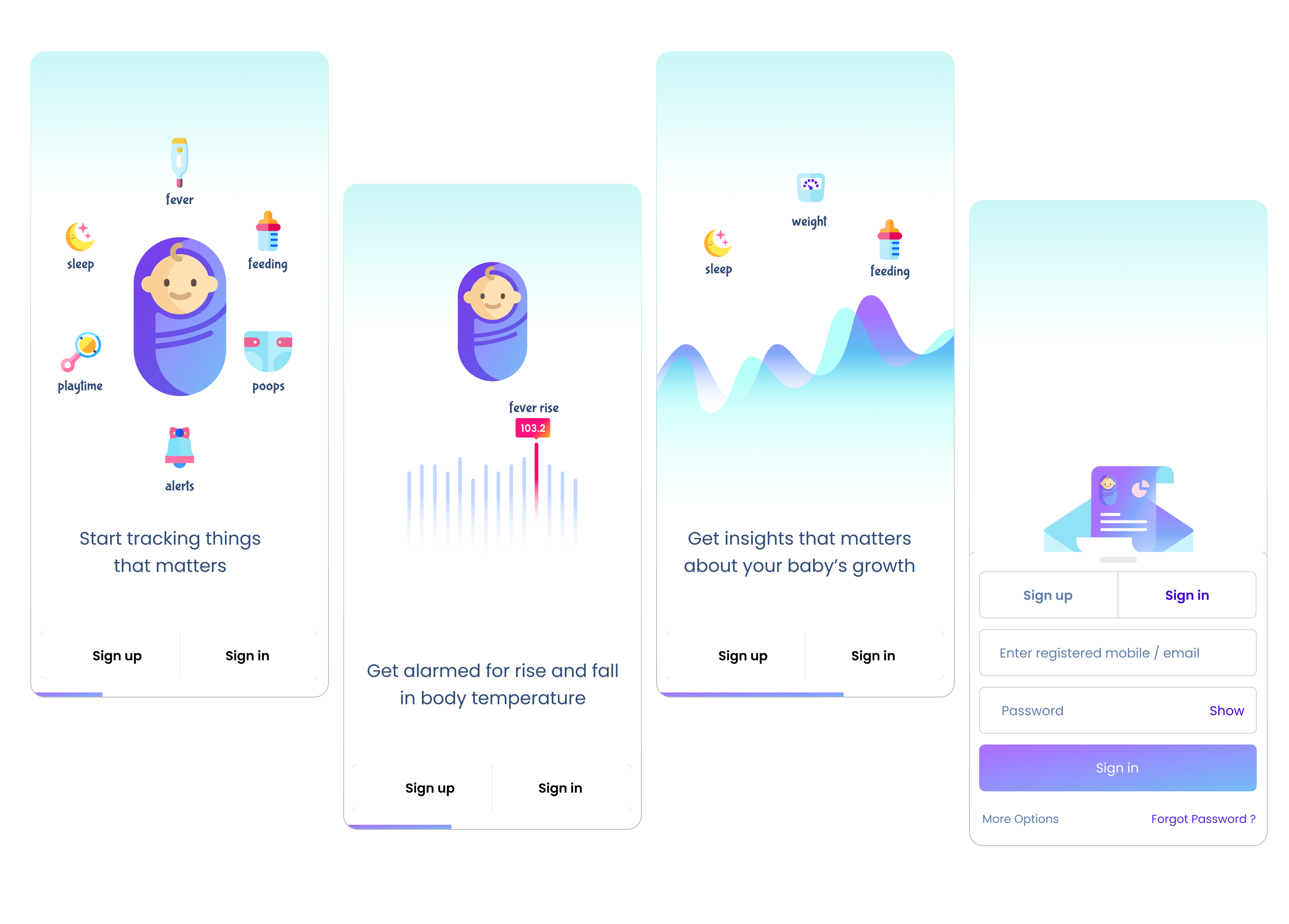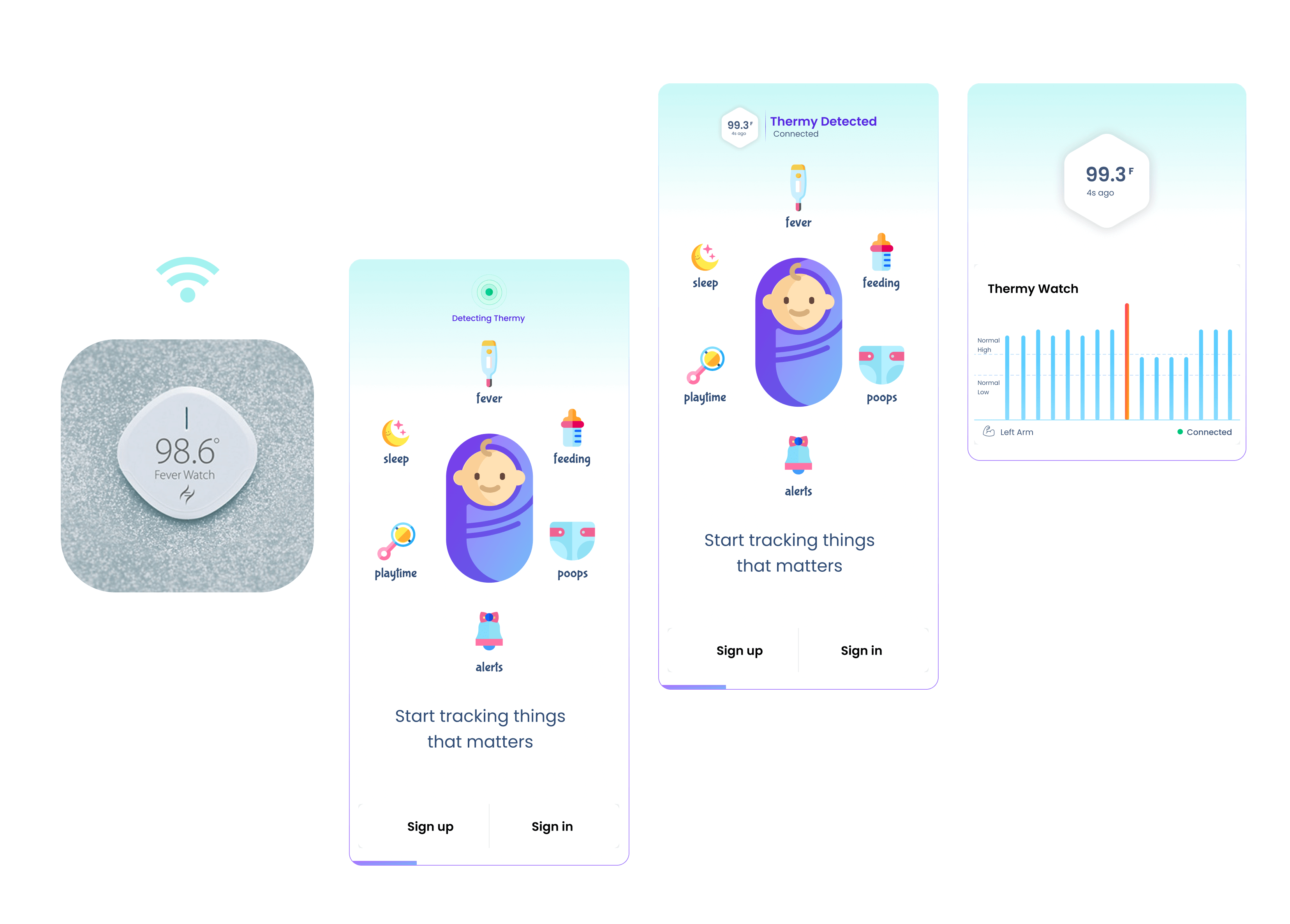 App comes with a fever tracking miniature wearable called Thermy. If baby is unwell and has fever, then Thermy can strapped on baby arm and it records the fever graphs. Along with that app allows many more features like tracking baby growth as per WHO norms, feeding well, tracking sleep, meds, vaccines etc.
